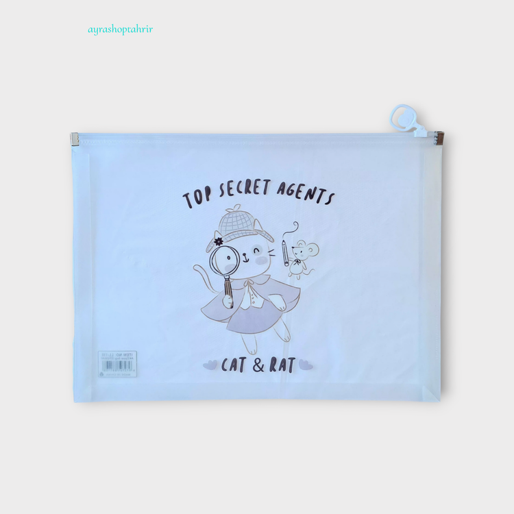 پوشه زیپی A4 فانتزی شفاف گربه کارآگاه